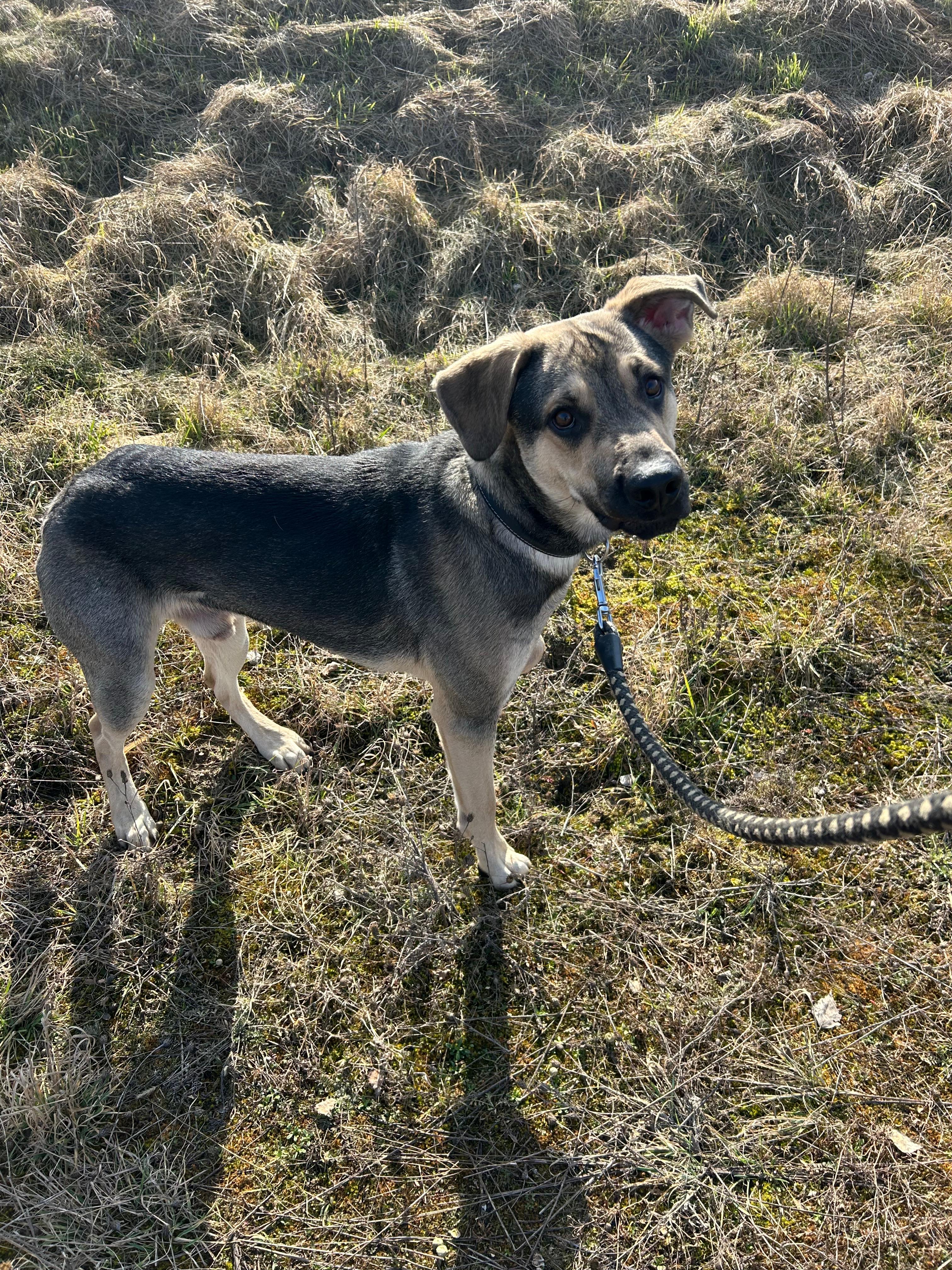 je kastrovaný kříženec labradora, starý přibližně 1,5 roku. Je to velmi aktivní, inteligentní a temperamentní pes, který má spoustu energie a chuť do života.